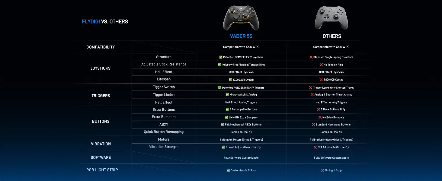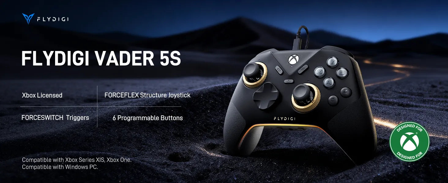 In the Box: Flydigi Vader 5S Controller, USB-C Data Cable, User Manual